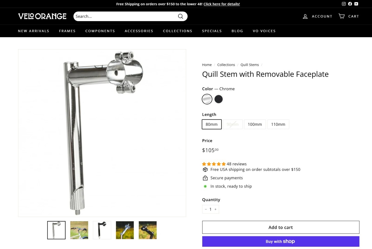 The threadless stem and adapter shown above won’t be used in the final bike build and I will instead utilize the Velo Orange Quill stem with the removable faceplate. I’m using the above Salsa product to try and get close so I can make a proper decision on the length of the stem.
